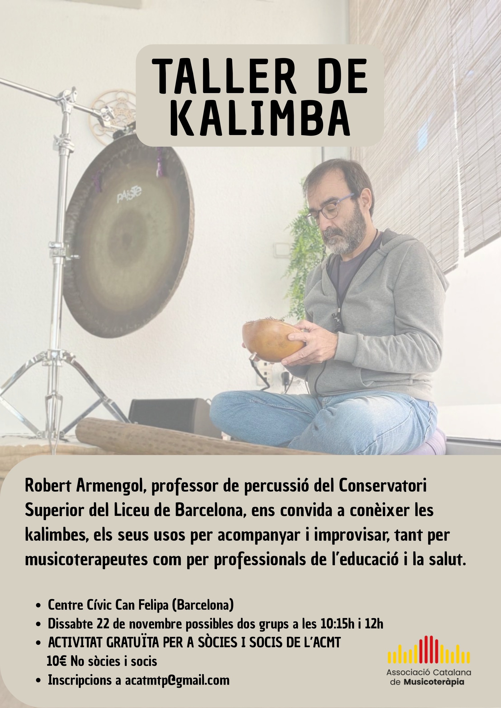 Al taller coneixerem la kalimba, algunes variants i les seves possibilitats. Parlarem de com afinar-les i, si en portes una teva, la posarem a punt. Tocarem algunes melodies i provarem acompanyaments amb kalimbes de deu notes. Juguem amb les kalimbes! Amb Robert Armengol.